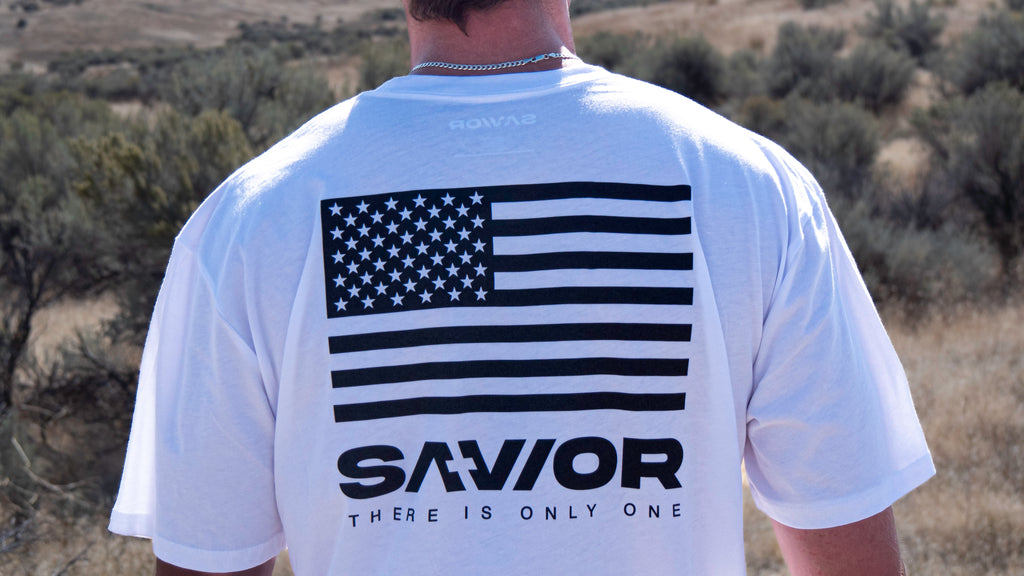 THE SAVIOR BRAND Patriotic T-SHIRT, MADE IN USA, UNISEX SHORT SLEEVE TEE